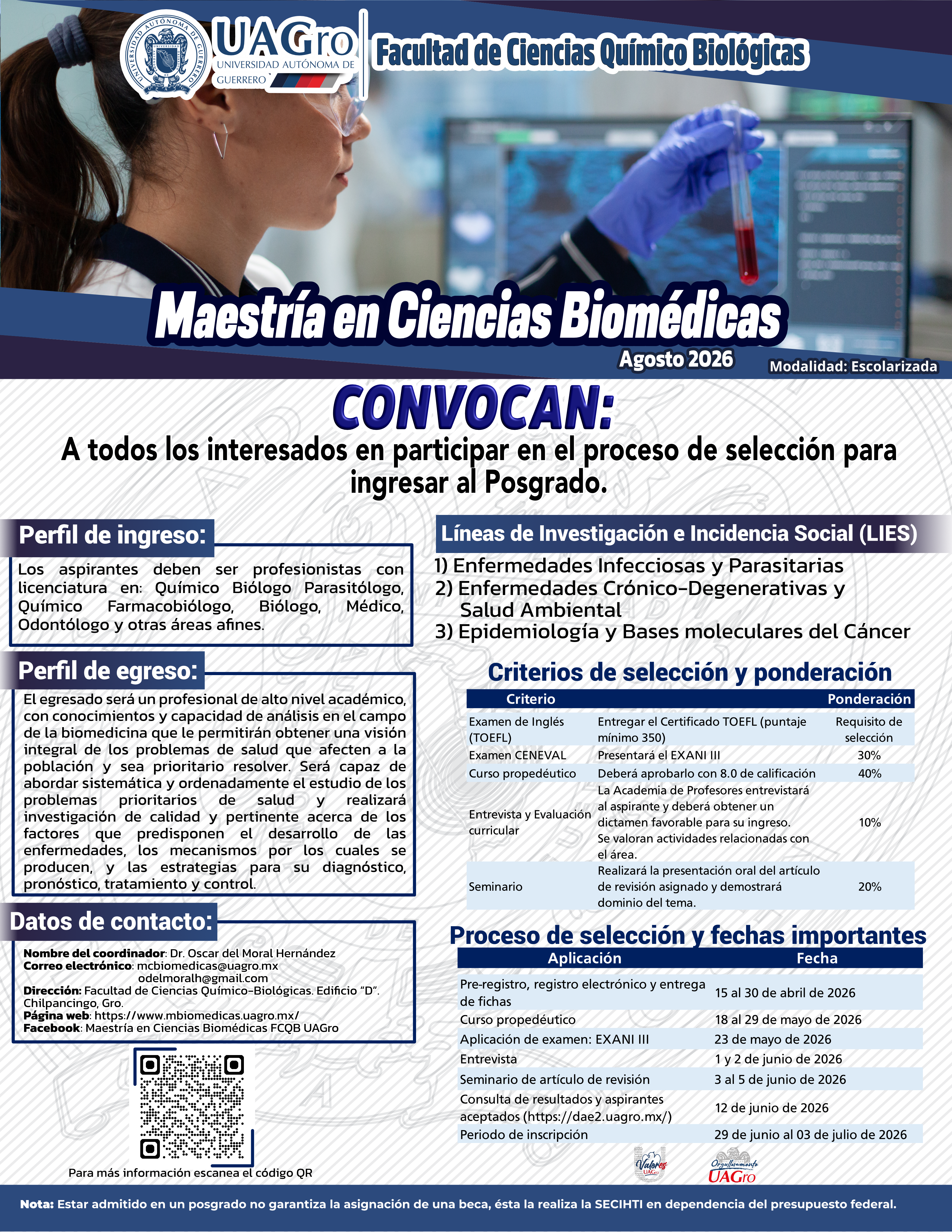 Doctorado en Ciencias Biomédicas Facultad de Ciencias Químico Biológicas | Doctorado en Recursos Naturales y Ecología Facultad de Ecología Marina | Maestría en Ciencias Biomédicas Facultad de Ciencias Químico Biológicas | Maestría en Recursos Naturales y Ecología Facultad de Ecología Marina |